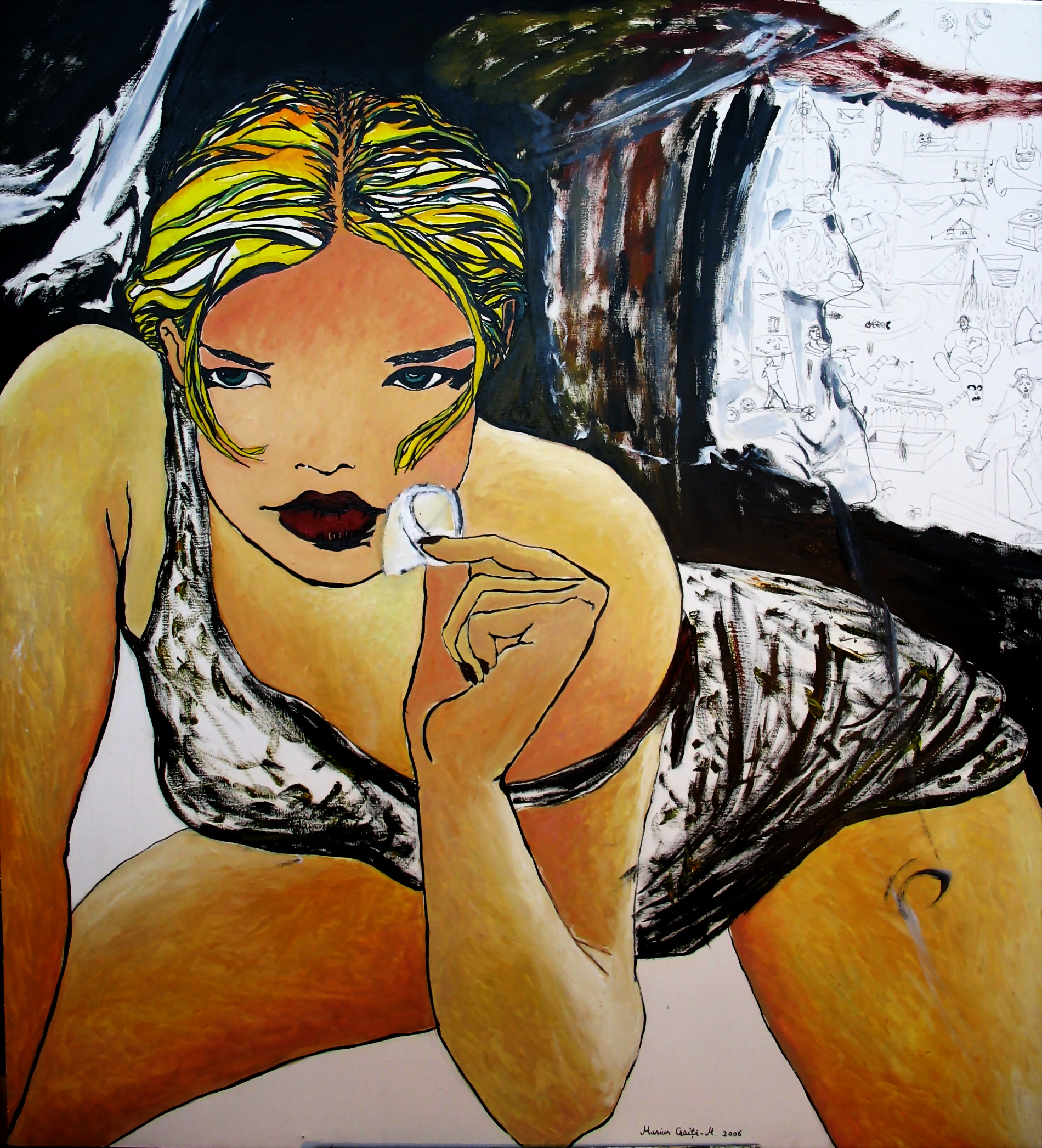 Euphemism, 117×127, oil on canvas Publicat pe martie 18, 2018 la 1900 × 2092 în „Cartoon world” Series (2005-2010)
